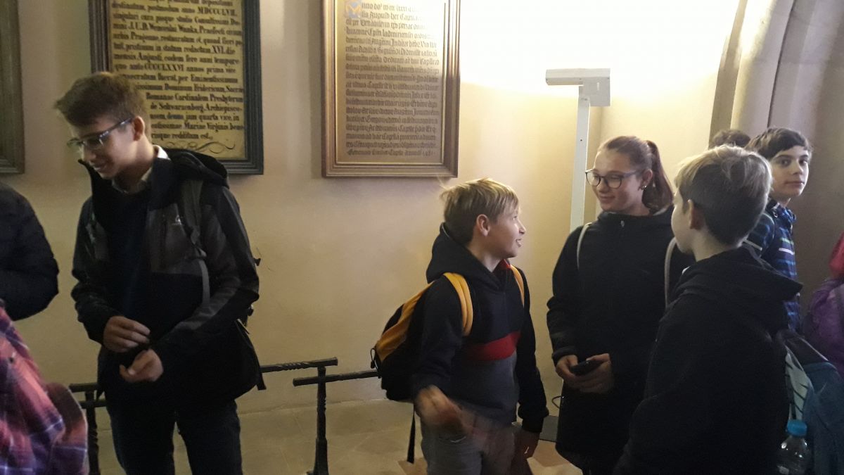 Vyhlášení 1. místa v Hejtmanově poháru, které proběhlo v historických prostorech Staroměstské radnice mělo své zástupce z naší třídy 8.A. Za sportovní reprezentaci školy byli do delegace naší školy vybráni Adéla Šrámková a František Spiřík. A náležitě si slavnostní příležitost užili. Převzali pohár, šek a ještě viděli symbol radnice – Staroměstský orloj ze zadní strany. Kromě toho si prohlédli i celou radnici, náměstí s pamětihodnostmi a historické centrum Prahy.