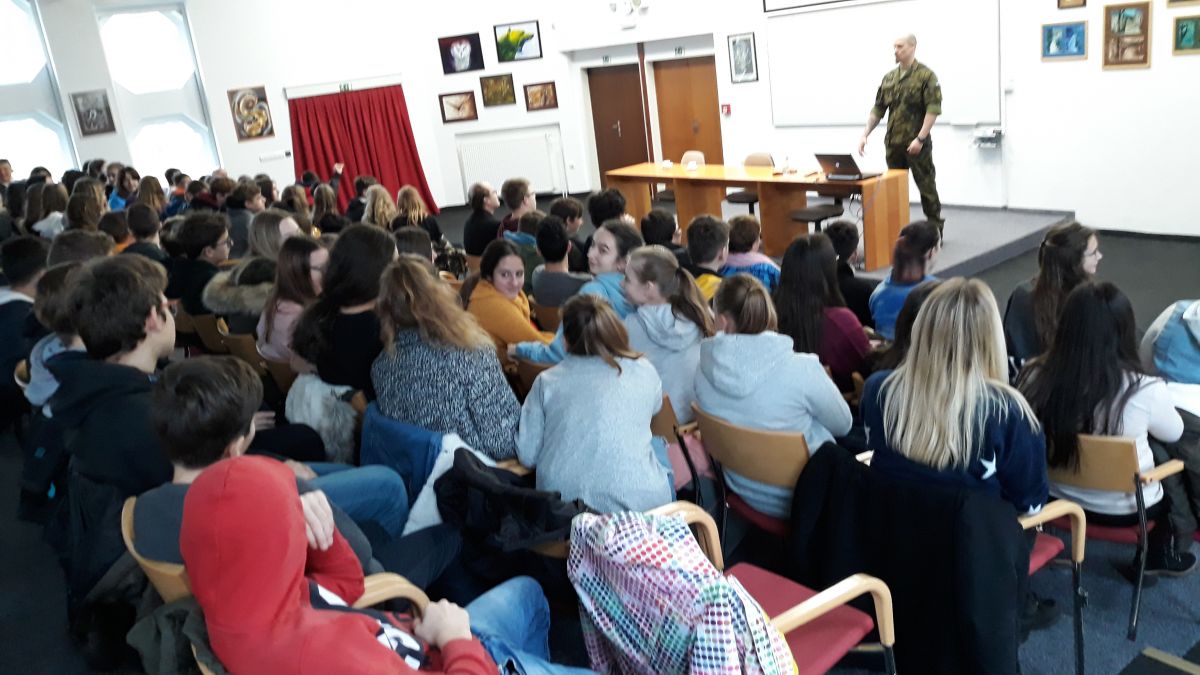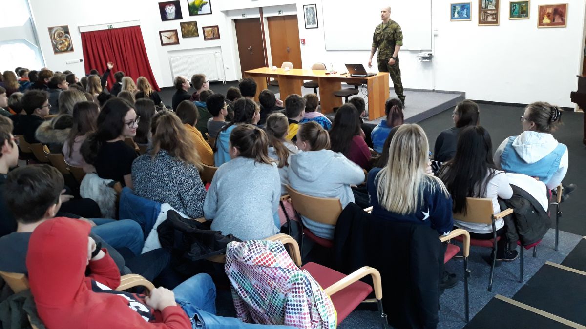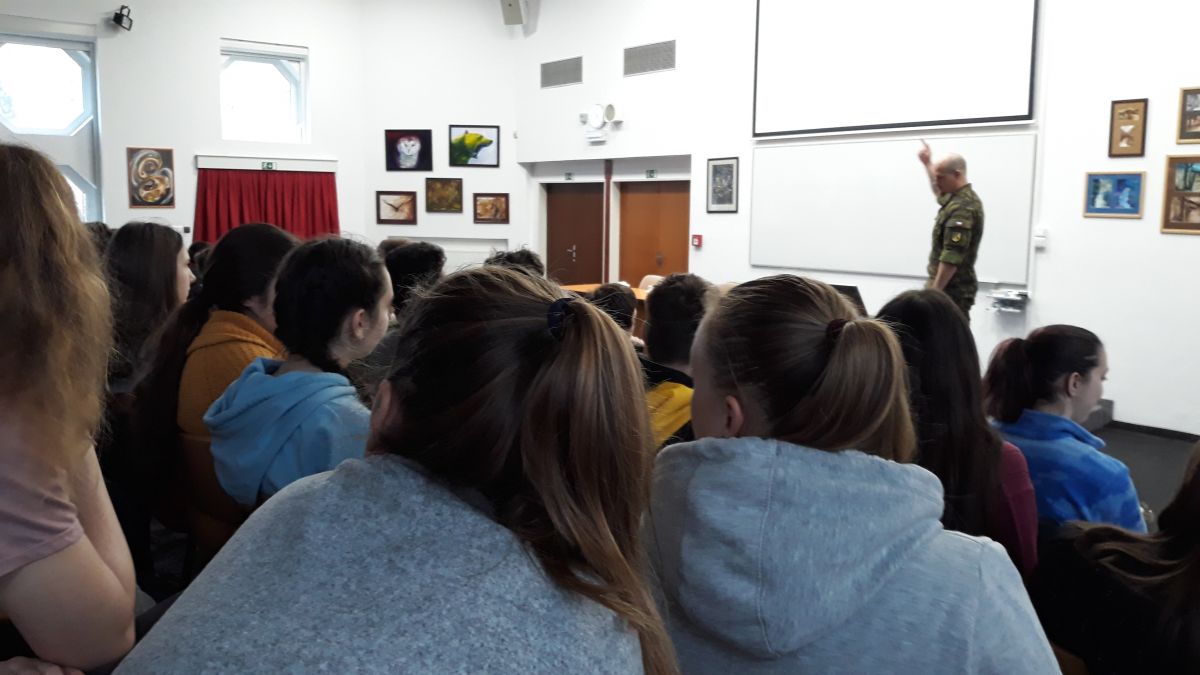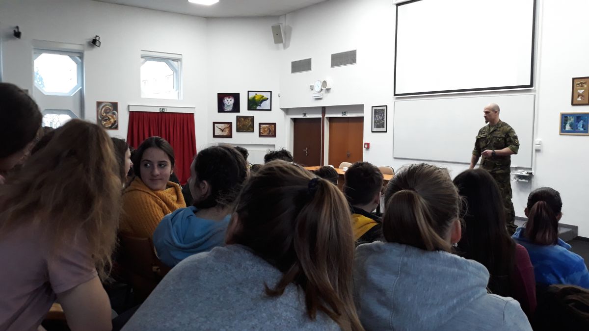 Hned po vánočních prázdninách jsme měli výuku zpestřenou zajímavou besedou. 7. ledna naše třída vyrazila do auly gymnázia na besedu se zástupcem české armády, který se účastnil několika válečných misí. Jeho vyprávění a zkušenosti, které nám předal, byly velmi zajímavé.