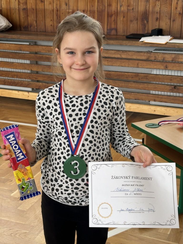 První místo si nakonec odnesla Josefínka Hubená s hrou na violoncello, následována Milanem Císlerem, který dokázal v časovém limitu nakreslit krásný obrázek na téma, které mu zadalo publikum. Stupeň vítězů poté uzavřela Viktorka Jílková zpěvem a hrou na klávesy.