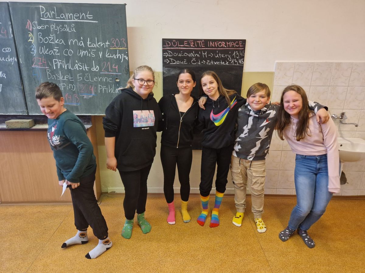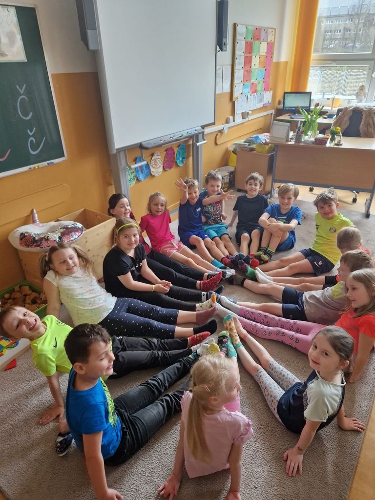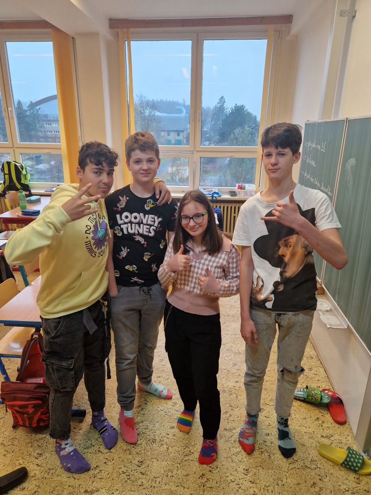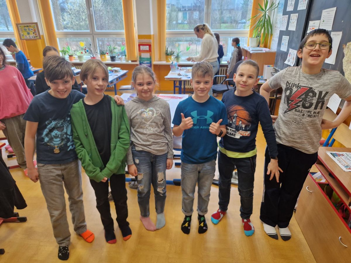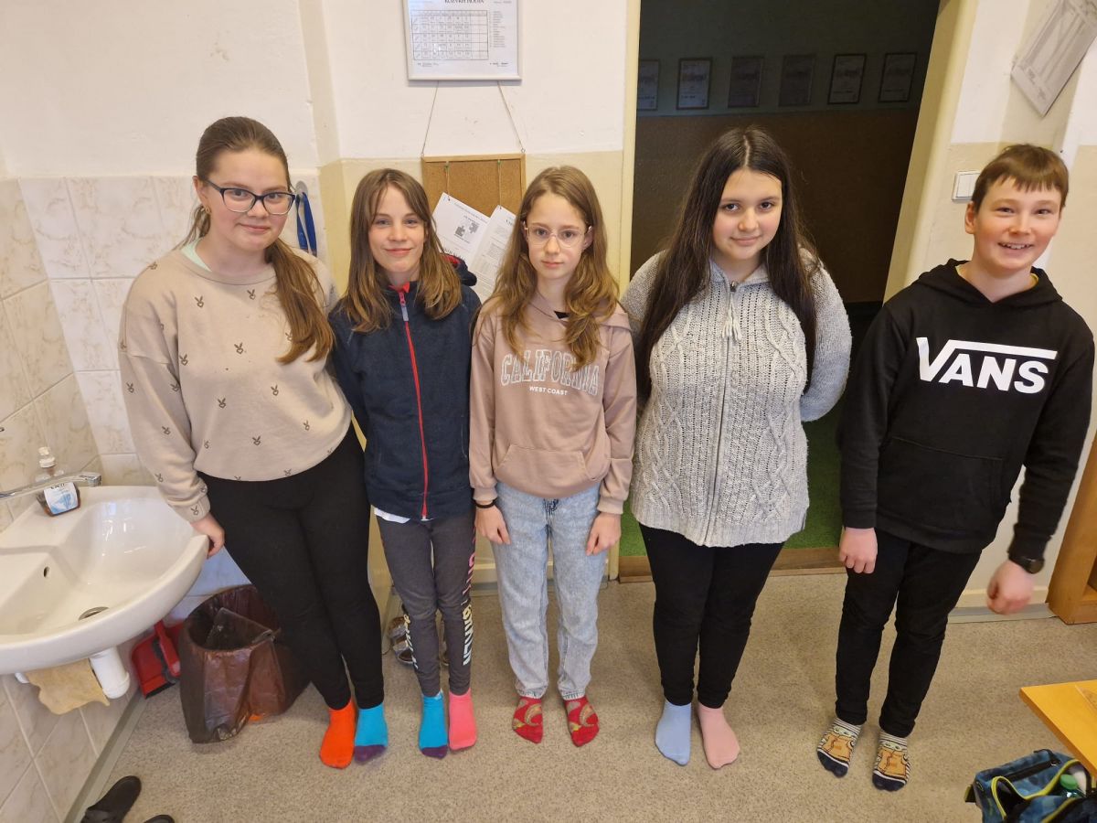 Ve čtvrtek proběhl na budově Boženy Němcové den barevných ponožek, který rozveselil jinak pochmurné dopoledne.