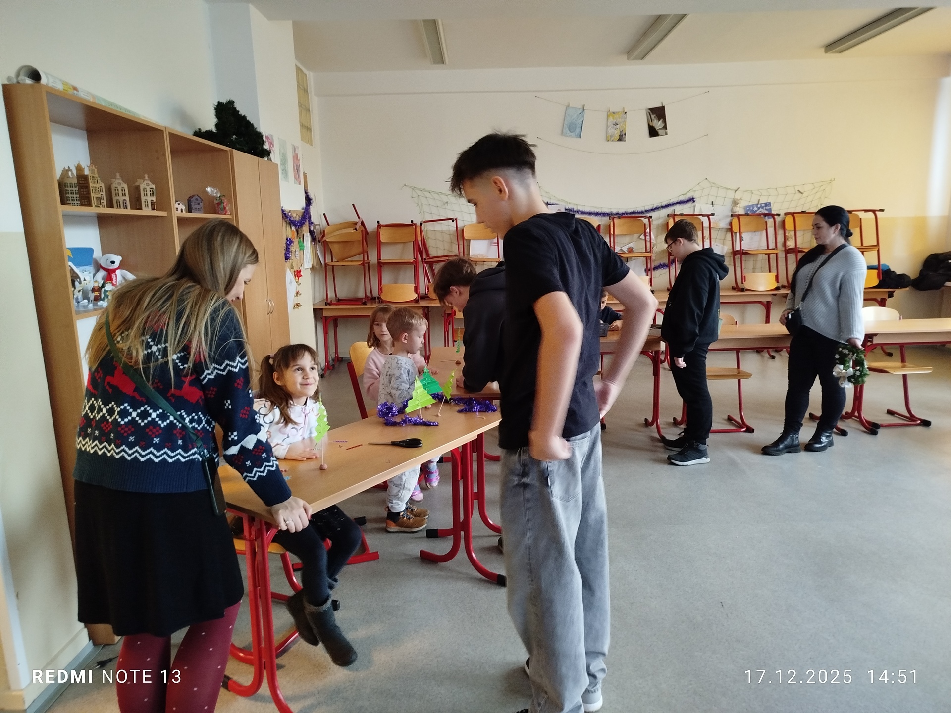 Součástí programu byl také koncert žáků a učitelů, který přinesl příjemnou předvánoční atmosféru. Vystoupení dětí i pedagogů ukázalo, že škola je místem, kde se kromě učení rozvíjí také spolupráce, talent a radost ze společného vystupování.