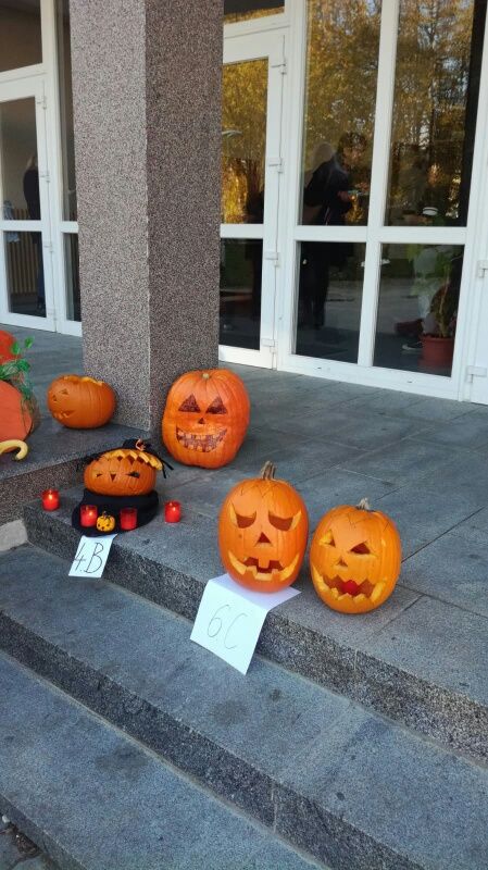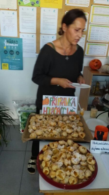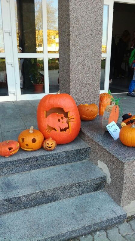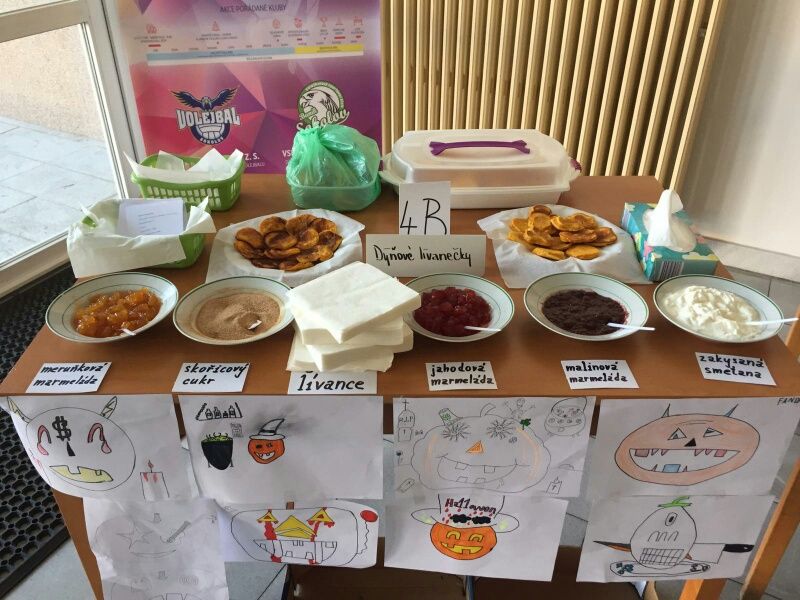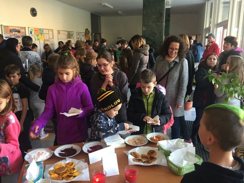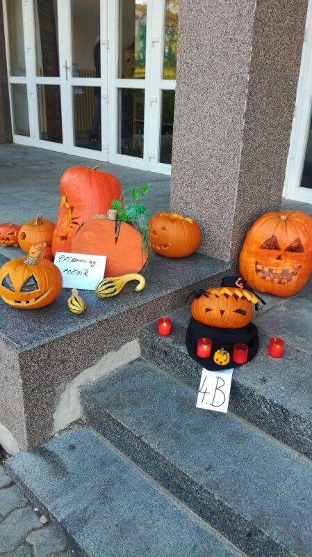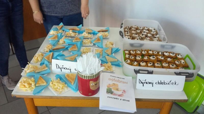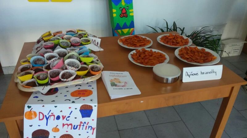 Odpoledne jsme pozvali rodiče a další veřejnost, aby si prohlédli krásně vyřezávané dýně a ochutnali dýňové mňamky. Z vybraných receptů jsme vytvořili kuchařku, kterou si návštěvníci dýňobraní mohli vzít a recepty vyzkoušet i doma. Byl o ni velký zájem, proto ji najdete i na našich webových stránkách.