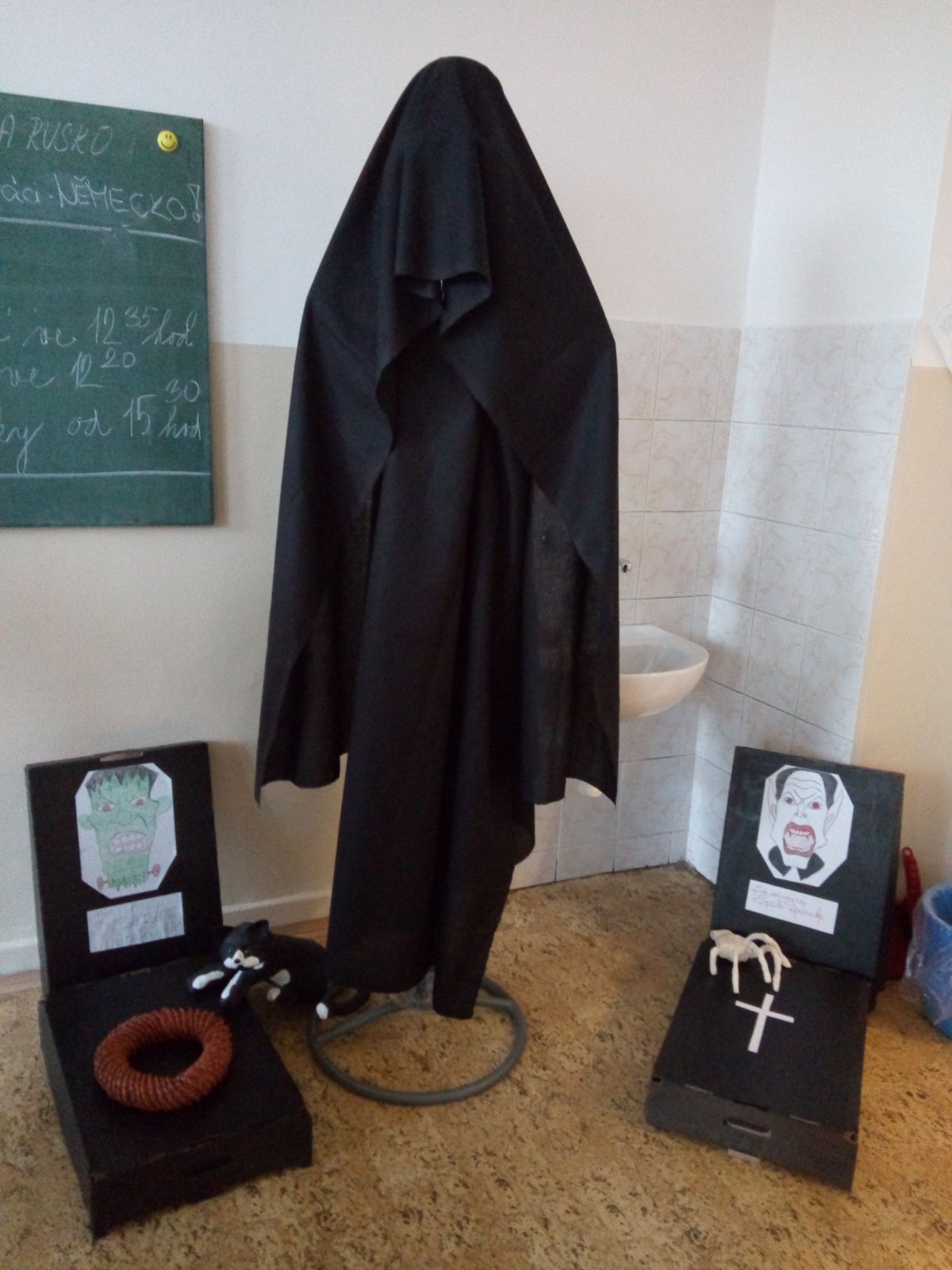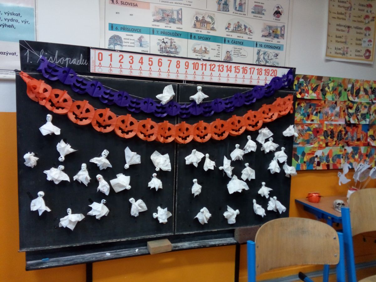 Dne 1. listopadu proběhl na naší škole tématický halloweenský/dušičkový den. Třídy soutěžily o nejlépe vyzdobenou třídu, žáci přišli ve strašidelných kostýmech, ani učitelský sbor nezůstal pozadu a předvedl velmi povedené masky a poslední vyučovací hodinu proběhla s třídními učiteli tematická hodina, na které jsme si připomínali význam obou svátků.