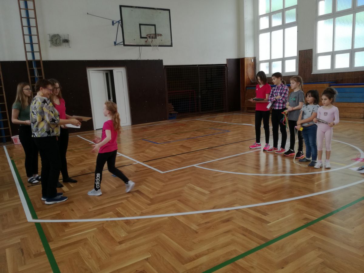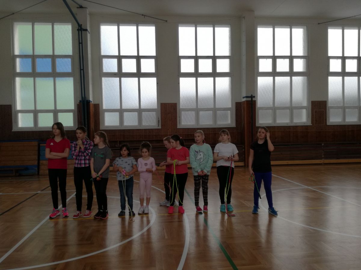 V první disciplíně šlo o co největší počet přeskoků za minutu. Z klání mezi děvčaty z 1. a 3. třídy nakonec vyšla vítězně Timea Suchá (119 přeskoků za minutu), následována Natálkou Morávkovou a Aničkou Řezníčkovou. V kategorii starších děvčat ze 4., 5., a 6. třídy zvítězila v největším počtu přeskoků za dvě minuty Karolína Korbelová (207 přeskoků za 2 minuty) v těsném závěsu Hanky Trnkové a Nicol M. Weissové .