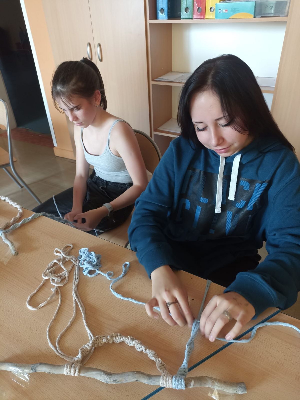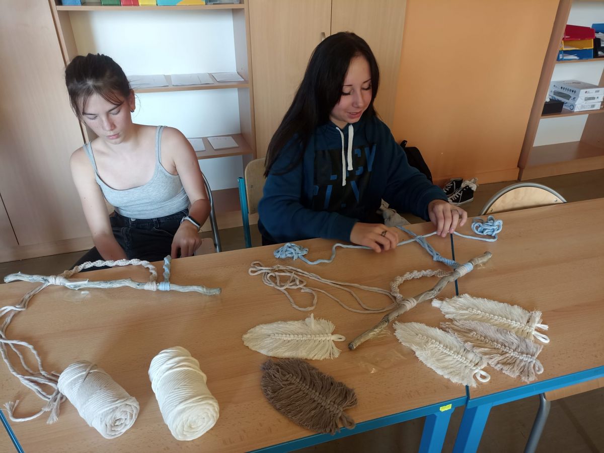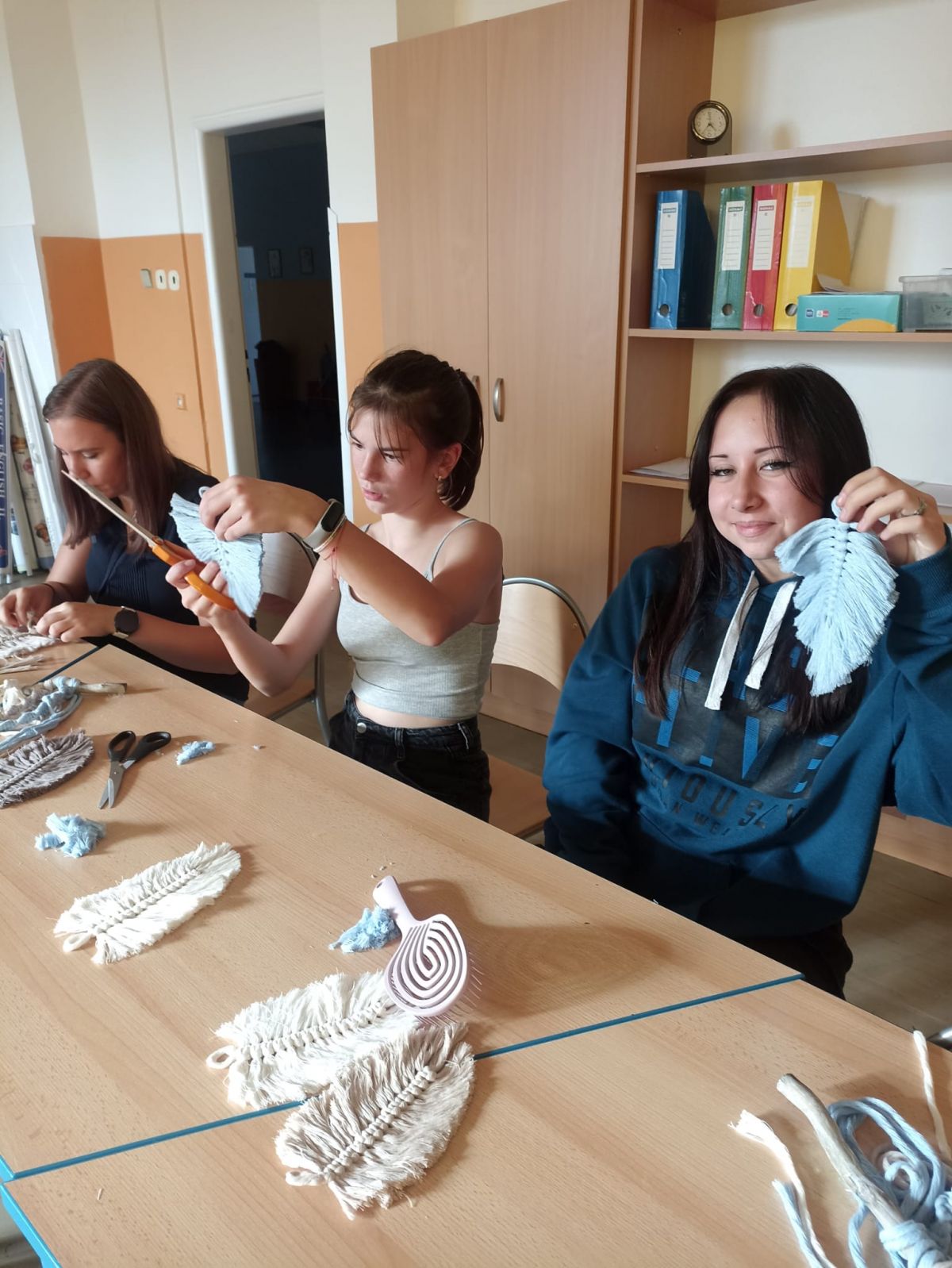 Na první schůzce se dívky věnovaly tvoření macramé dekorace pod vedením paní učitelky Hrdličkové.