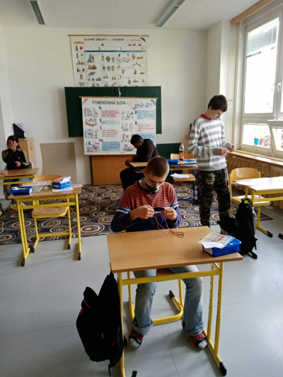 Doba postcovidová. Byly jsme nějakou dobu dobu sami, teď se vracíme do školy a chceme, aby náš kolektiv fungoval jako dřív. Povídáme si o vztazích mezi sebou, hrajeme různé hry, snažíme se budovat přátelské vztahy mezi sebou. Proto jsme se rozhodli vytvořit pro sebe a své kamarády náramky přátelství.