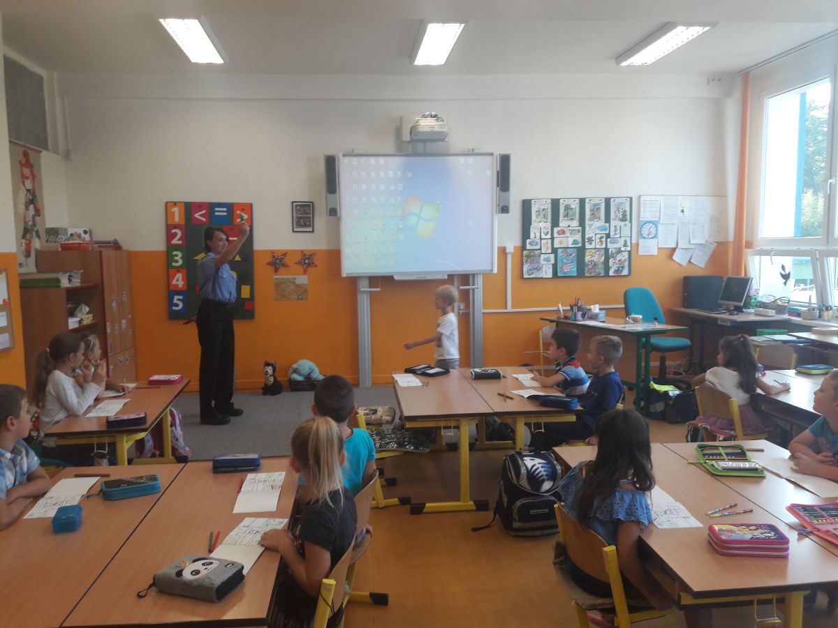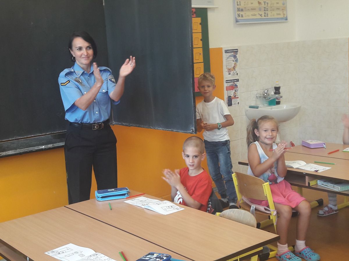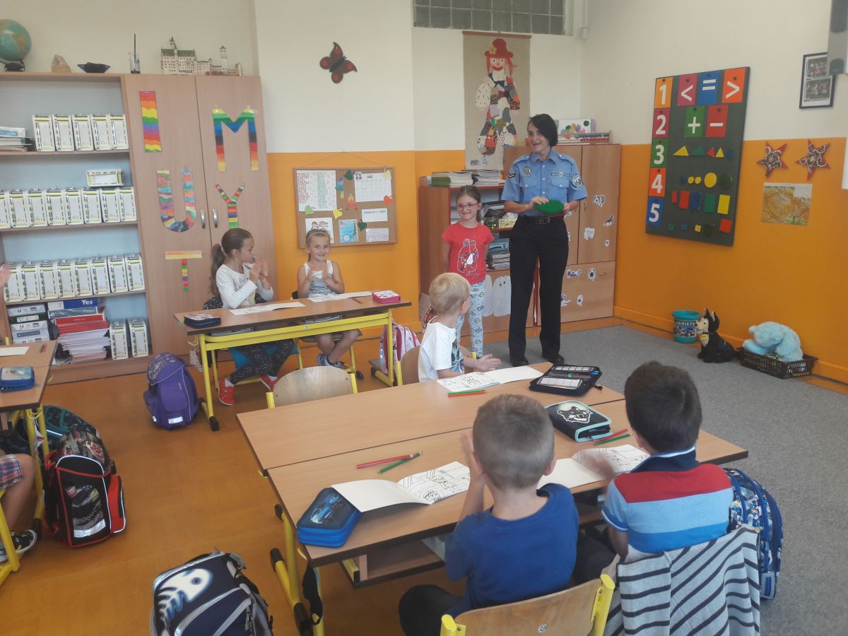 Dnes k nám přišla na návštěvu paní Černá z Městské policie Sokolov. Dvě vyučovací hodiny s dětmi hravou formou probírala, jak mají správně přecházet přes silnici, jak se mají chovat při kontaktu s cizími lidmi, co mají dodržovat při jízdě na kole a další důležité dovednosti. Po splnění všech úkolů došlo i na odměny, které žákům udělaly velkou radost. Všechny nás návštěva potěšila a už se těšíme na další!