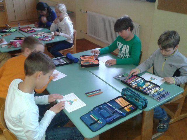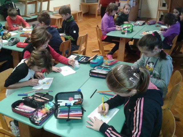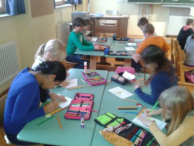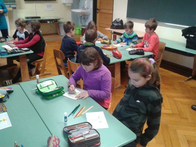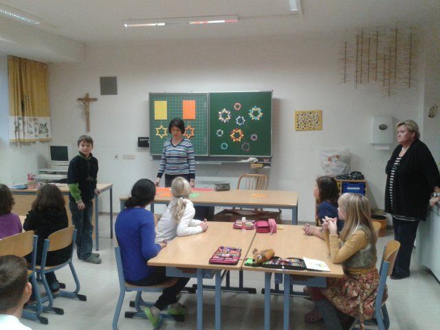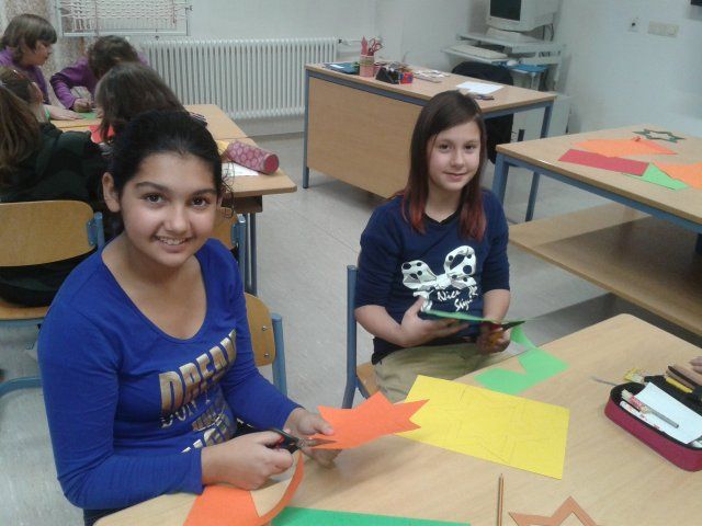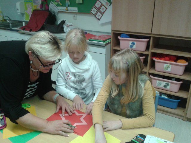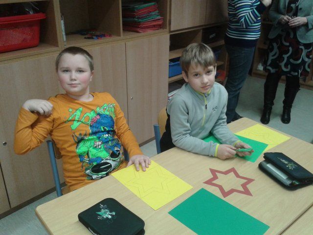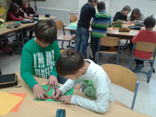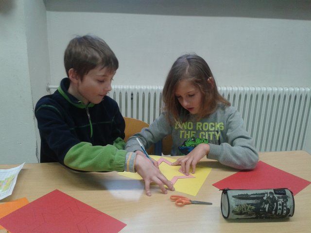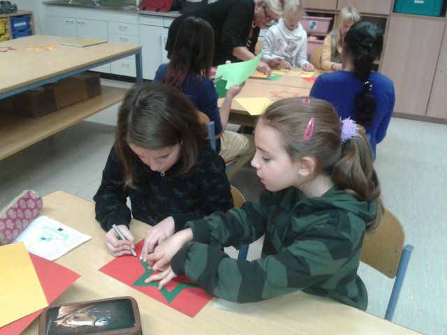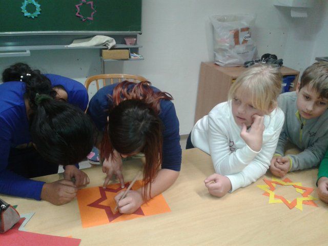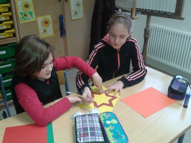 Žáci během dopoledne vyráběli vánoční hvězdy a upevňovali své jazykové dovednosti v němčině a angličtině.
