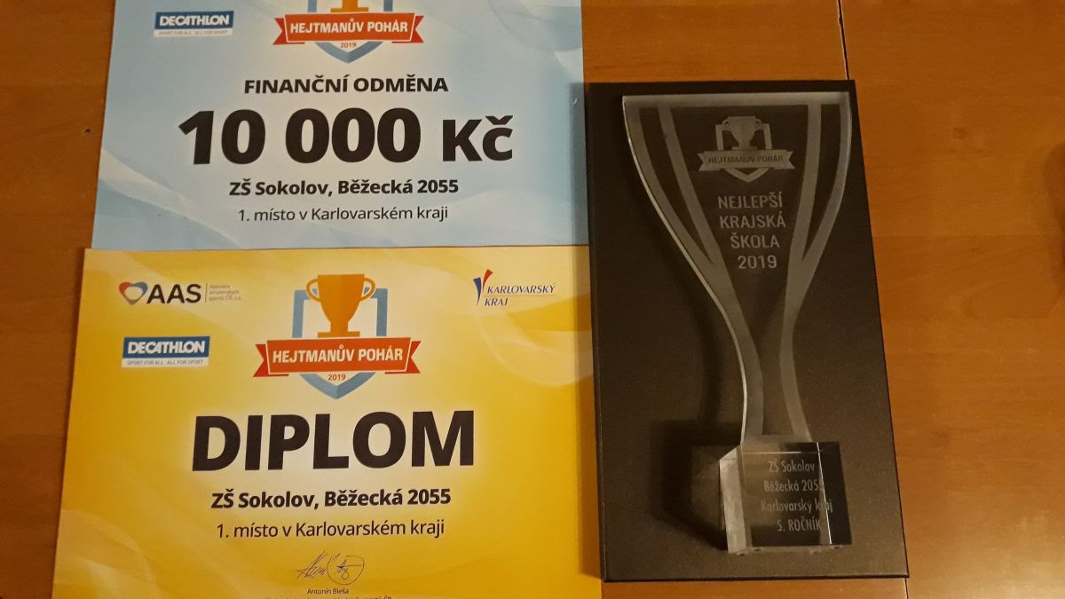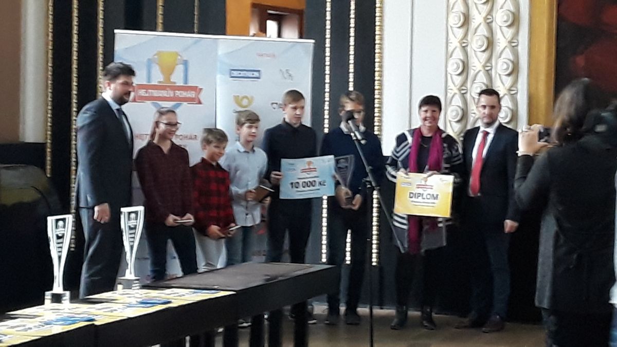 Dne 6.11. si užili žáci naší školy dalšího sportovního a společenského úspěchu. I když jsme věděli již od jara, že jsme v soutěži Hejtmanův pohár 2018-2019 v našem kraji zvítězili, teprve nyní jsme mohli cenu za toto umístění převzít. A v letošním roce to bylo opravdu slavnostní. Pořadatelé soutěže medailisty ze všech krajů pozvali do Prahy na Staroměstskou radnici. Naši školu spolu s paní učitelkou Lenkou Kaloudovou zastupovalo celkem 5 žáků 1. i 2. stupně.
