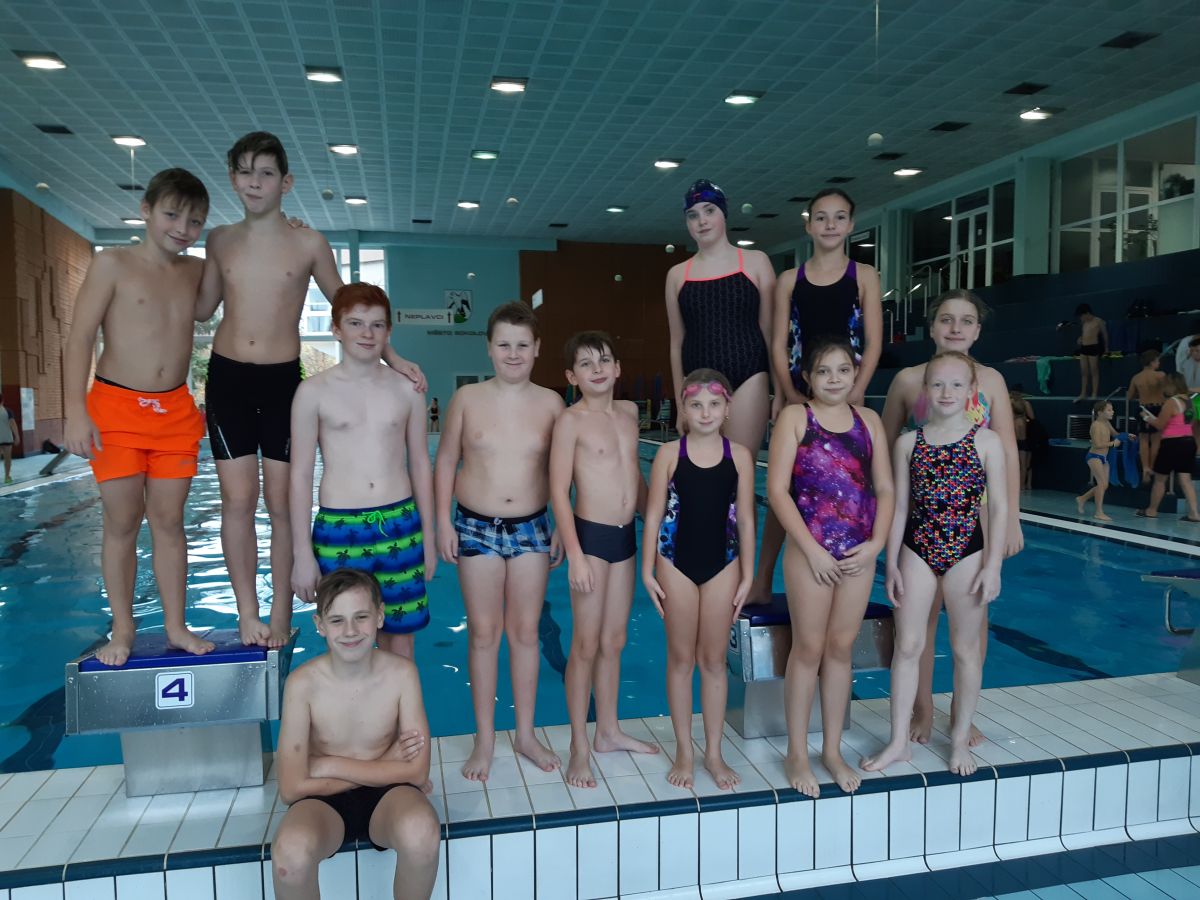 Gratulujeme Všem za skvěle 4. místo ( Patrik Šenkýř, Tobiáš Čurlin, Dominik Skála, Sofie Suchopárová, Karolína Valdmanová, Amélie Holejšovská, Tereza Šperlová, Nela Souralová) kde jsme se museli obejít bez několika plavců specialistů z důvodu nemoci. O to více potěšila individuální umístění v jednotlivých disciplínách, která pomohla celé škole.
