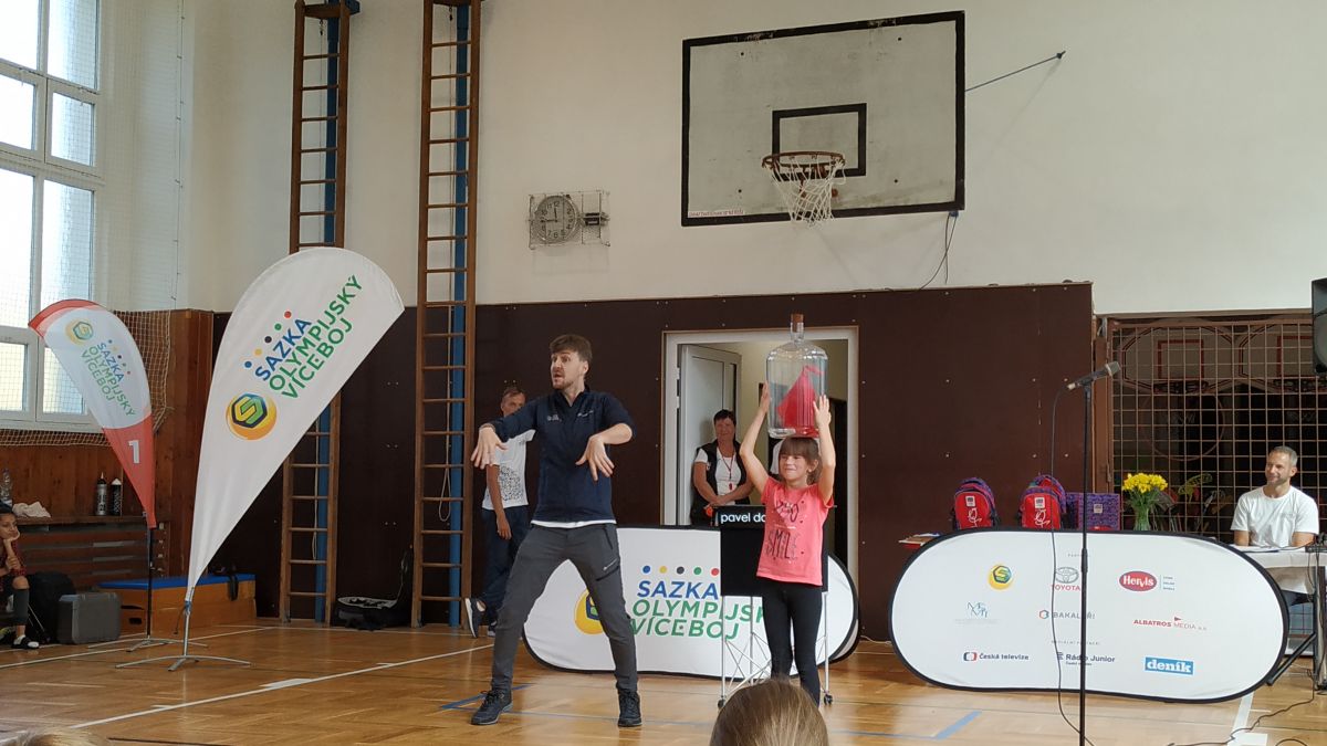 Čtvrtek 17.10.2019 byl pro naši školu Dnem D. Díky šťastnému losu jsme u nás v rámci projektu Sazka Olympijský víceboj mohli zažít trénink s olympionikem. Sazka Olympijský víceboj, do kterého jsme aktivně již řadu let zapojeni, je největším školním sportovním projektem v České republice.