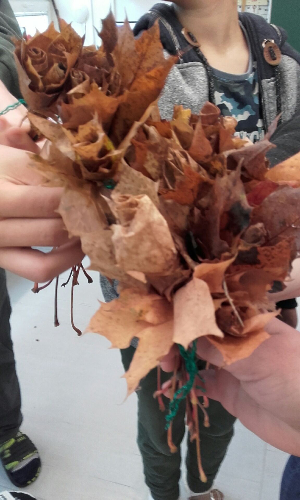 Rozhodli jsme se zkrášlit si naše prostředí a zároveň si zpříjemnit sychravé podzimní počasí. Vyrobili jsme si krásný věnec na dveře naší třídy. Zdobí ho vlastnoručně vyrobené růžičky z javorových listů.
