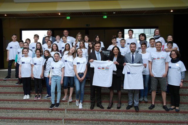 Na závěr týdne nás navštívil starosta města, zástupce krajské i zemské vlády, poděkovali nám za naši práci a předali nám trička s logem projektu, které navrhl náš Lukáš Dopita z 6. A.