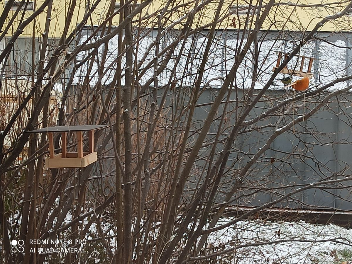 Vyrobili jsme krmítka, která jsme zavěsili pod okna naší třídy, abychom mohli pohodlně pozorovat. Pozorovali jsme, poznávali a určovali jsme druhy ptáků, kteří přilétli na naše krmítka. A samozřejmě 60 minut sčítali jednotlivé druhy - navštívili nás sýkorky modřinky, sýkorky koňadry, kos, hýl, červenka i strakapoud.
