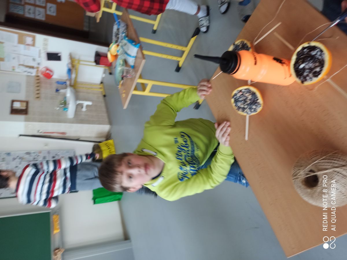 Jaké ptáky můžeme nejčastěji spatřit u krmítka v zimě? Kam správně umístit krmítko? Čím krmítko naplnit? Tyto otázky a spoustu dalších jsme si zodpověděli v našem projektovém dni. Vyrobili jsme přírodní krmítka z pomerančů a jablíček a umístili jsme je pod okna naší třídy. Chystáme se totiž v lednu na "Ptačí hodinku".
