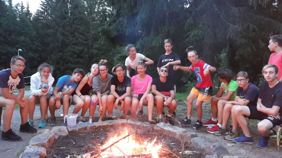 Další kroky vedly na základnu Sluníčko, která je v romantickém prostředí lesa na okraji Rotavy. Tady jsme se všichni ubytovali a protože venku bylo téměř 40 stupňů ve stínu, přesunuli jsme se k nedalekému rybníku a užili si osvěžení v čisté přírodní vodě. Odpoledne všechny čekaly turnaje v ,,minipinčesu“, volejbalu a v pétanque. na nejúspěšnější čekaly vtipné ceny.Večer se opekly buřty a brambory a zazpívali jsme si u kytary.