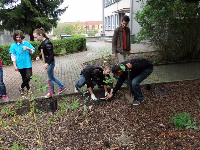 Je to celkem velká sídlištní škola, jejich ekotým má 30 členů a připravili si pro nás velmi pestrý a zajímavý program. Seznámili jsme se s prací ekotýmu, prohlédli si pěknou školní zahradu s mnoha zákoutími a výukovými prvky. Pak si nás ekotým rozdělil do skupin a plnili jsme různé úkoly. Na zahradě jsme počítali stáří stromů, v klubovně ekotýmu poznávali rostliny a živočichy, vyzkoušeli si i zdravovědu, jen pro statečné byly pokusy se světlem a ohněm nebo poznávání pochutin jen pomocí čichu nebo chuti. Na památku celého setkání si každá zúčastněná škola vysadila svůj okrasný keř. Nám se líbila svída červená. Mgr. Monika Horárová, koordinátor EVVO