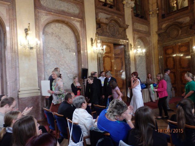 Ti všichni poděkovali oceněným školám za jejich práci a přínos pro společnost i životní prostředí. Členové ekotýmů si pak prohlédli budovu Valdštejnského paláce, nahlédli do míst, kde pracují naši senátoři, a nakonec se sešli ve Valdštejnské zahradě k dalšímu programu. Pro účastníky bylo připraveno i drobné občerstvení.