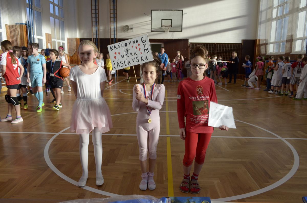 V den slavnostního předávání pololetního vysvědčení se na prvním stupni naší školy pořádal sportovní karneval. Tělocvična byla plná takových hvězd jako je Martina Sáblíková, Jaromír Jágr, Ester Ledecká, Petra Kvitová ..... Dorazili i sportovci ze zahraničí. A jsem ráda, že se objevili i ti, na které budeme stále s úctou vzpomínat - například Věra Čáslavská. Na jeden den se zkrátka naši žáci stali svými sportovními idoly - a bylo na co se dívat! O to horší pak bylo pro porotu vyhodnocovat ty nejlepší masky. Snad se nám to přece jen spravedlivě povedlo a karneval jsme si všichni pořádně užili!