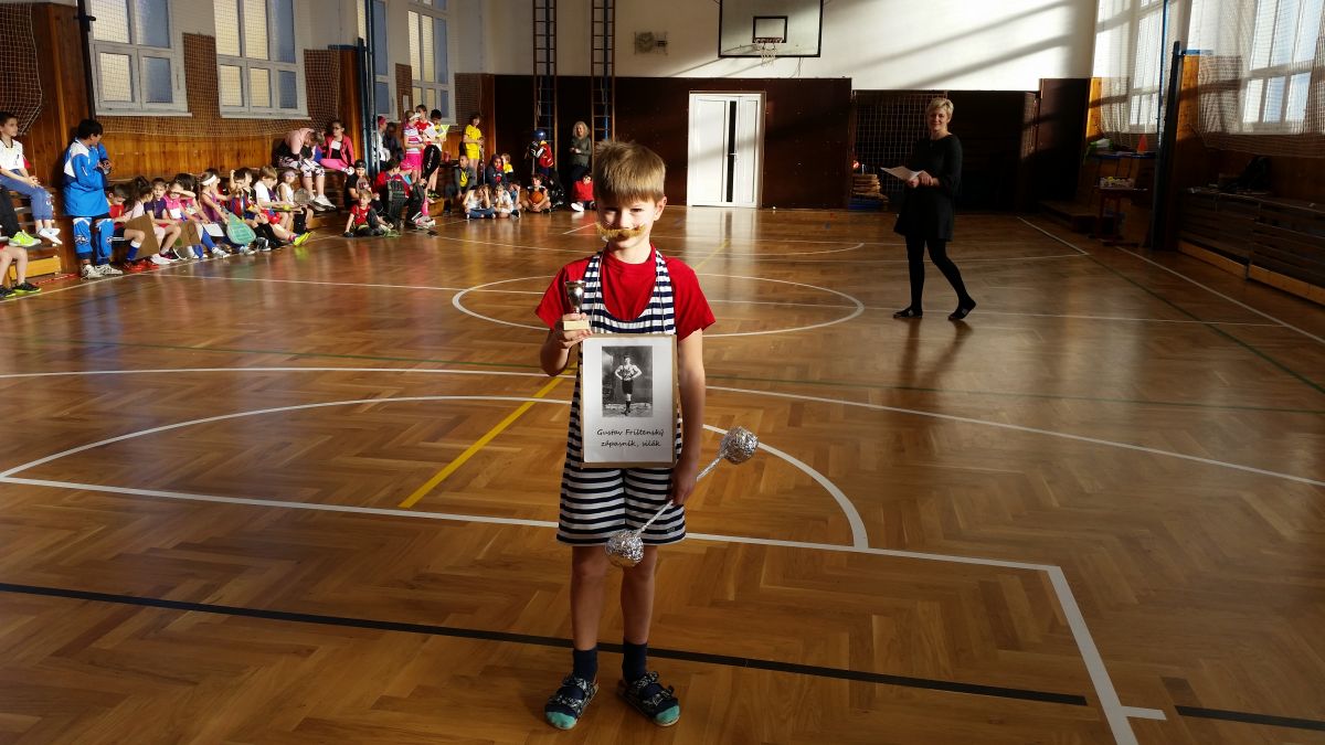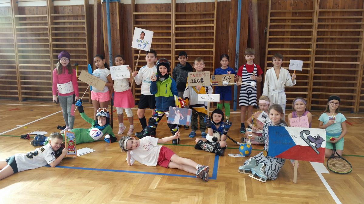Poslední den 1. pololetí byl nejen ve znamení vysvědčení, ale na všechny děti 1. stupně čekal sportovní karneval - jedna z výzev sportovní soutěže Hejtmanův pohár, do níž je naše škola zapojena. Všechny děti se v tento den proměnily ve známé české i zahraniční sportovce. Ve třídě se nám objevili slavní fotbalisté, tenisté, lyžaři, judisti, házenkáři, a dokonce nás svou návštěvou poctil i slavný český zápasník v řeckořímském zápasu Gustav Frištenský!