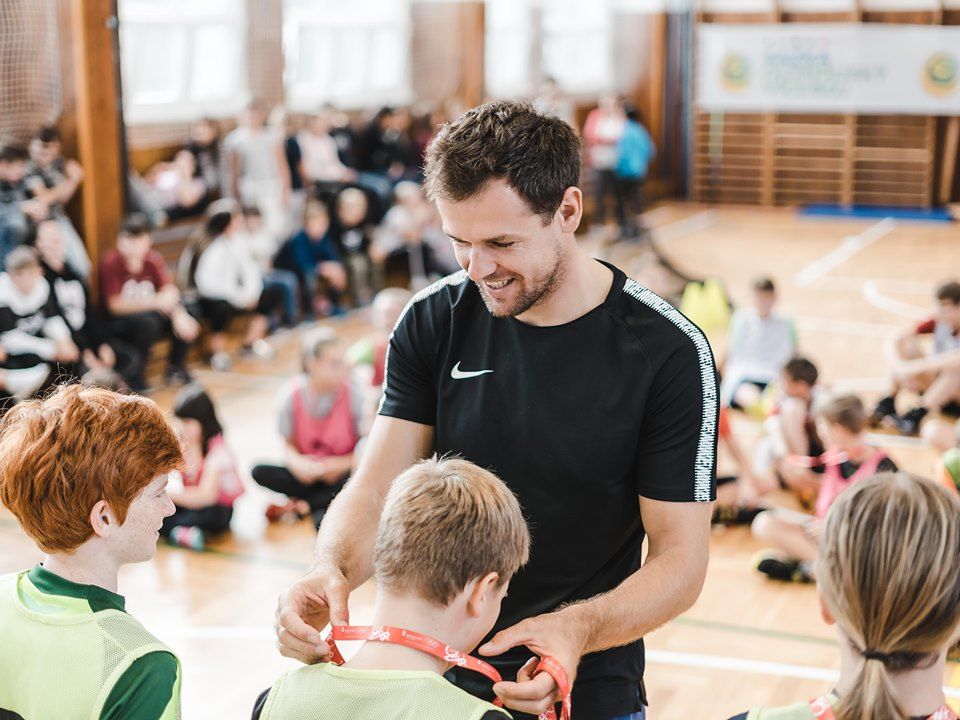 Ti všichni spolu se čtyřiceti vybranými sportovci školy před zraky naší paní ředitelky Lady Jelašičové a diváků z řad našich žáků ukázali super zábavné sportování čtyř týmů na čtyřech stanovištích. Program doprovázel slovem moderátor a kouzelník Pavel Dolejška, který nadšeným dětem ukázal i některé ze svých kouzel. My jsme na oplátku za krásnou ukázku sportovního tréninku zábavnou formou připravili pro hosty obrázky se sportovní tématikou a také sladkou dobrotu ve tvaru olympijských kruhů. Na oplátku jsme od hostů dostali krásné ceny s olympijskou tématikou. Na závěr celého dopoledne ještě proběhlo vyhlášení výsledků a autogramiáda Petra Frydrycha, na kterého při ní směřovala i řada dotazů dětí. Všichni jsme si tuto sportovní akci užili a všichni se těšíme na nějaké další podobné sportovní překvapení.