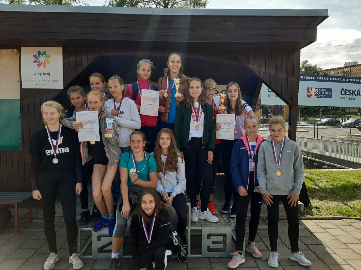 Jedna z prvních sportovních soutěží byl Atletický čtyřboj, kde školu reprezentovali i zástupci naší třídy 7.A. Výborně se dařilo děvčatům,Bára Milková, Kačka Saletová, Kája Suchá, Leona Kurucová a Emma Juhásová svými výkony vybojovaly bronzové medaile a navíc ještě Kája v jednotlivcích obsadila 3. místo. Jsme na naše spolužačky pyšní.