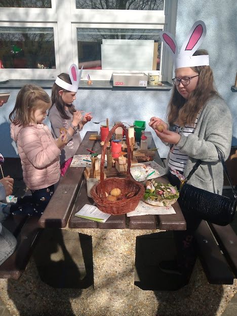 Rozhodli jsme se připomenout si s dětmi velikonoční tradice, na které se dnes již mnohdy zapomíná. Seznámili jsme se s názvy postních nedělí. V pašijovém týdnu jsme přišli modře oblečení na Modré pondělí, šedě v Šedém úterý a co nejveseleji na Škaredou středu, abychom se nemračili. Každá třída prožila svůj projektový den třeba s velikonočním kvízem, různými velikonočními úkoly a pečením tradičních velikonočních dobrot. Tyto velikonoční dobroty jsme nabídli k ochutnání rodičům při již naší tradiční zahradní slavnosti, která se tentokrát konala 12. 4. 2022 pod názvem „Velikonoční hrátky“. Rodiče tak mohli ochutnat velikonoční nádivku, beránka, jidáše, mazanec, nebo různé druhy jarních pomazánek, jarní mechové muffiny nebo vajíčkové myšky a plněné mrkvičky. Kromě toho jsme pro návštěvníky měli připravený bohatý program – mohli se naučit plést pomlázku, nazdobit si kraslice, vytvořit si jarní dekoraci, velikonoční ozdobu a čelenku nebo se nechat vyfotit ve velikonočním fotokoutku. Pro menší děti byl na zahradě připraven menší kvíz s tajenkou.